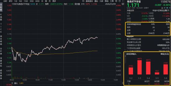 热门ETF方面,揽尽有色金属行业龙头的有色ETF(159876)全天震荡上行,场内价格现跌0.59%,截至发稿,获资金实时净申购600万份,此前5个交易日连续吸金,合计狂揽1.46亿元,反映资金看好有色金属板块后市,积极进场抢筹!